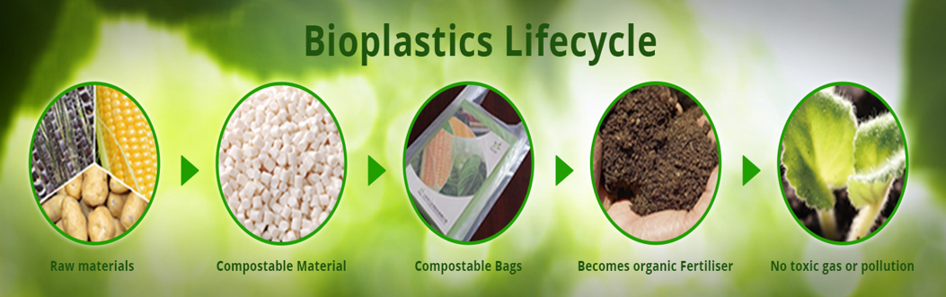 Bio-plastics are a new generation of compostable & biodegradable plastics which are made from readily renewable resources such as corn, soybeans, potato, etc.